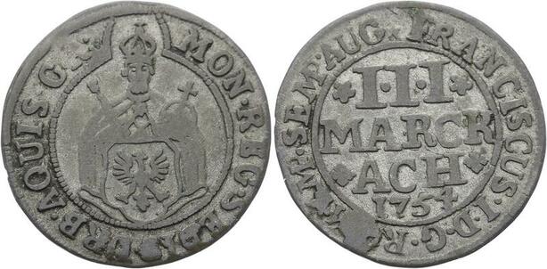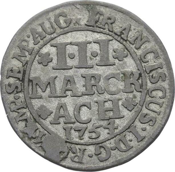 O3106 Rare German States Aachen 3 Marck Francis I 1754 KM# 50 ->Make offer