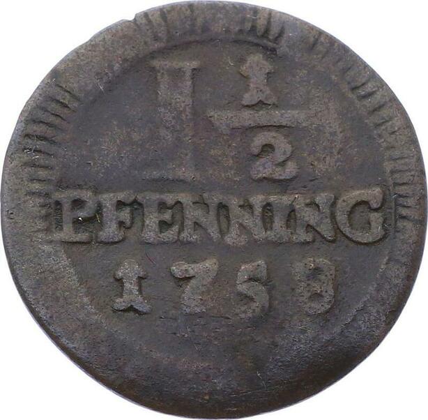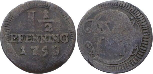 O3120 German States Munster 1 1/2 Pfenning Clemens August 1758 KM# 336