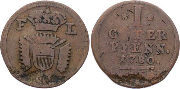 O3126 German States Hessen Kassel Schaumburg Pfennig Friedrich II 1780 KM# 35