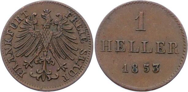 O3132 German States Frankfurt Heller 1853 KM# 351 AU Superbe ->Make offer