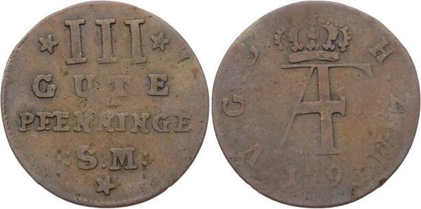 O3157 Germany Mecklenburg Strelitz 3 Gute Pfenninge Adolf Friedrich IV 1793