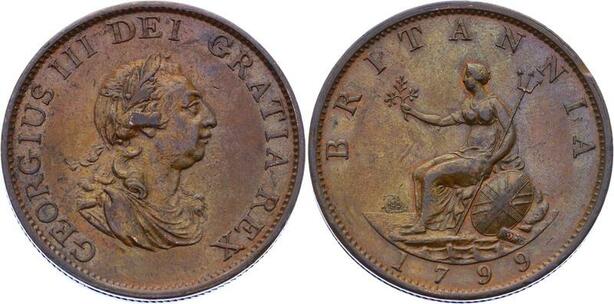 O3162 Great Britain 1/2 Penny Georges III 1799 Soho UNC !! ->Make offer