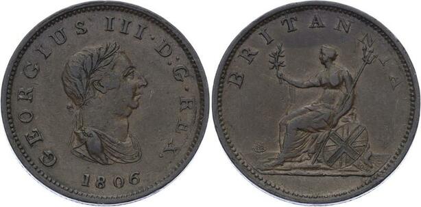 O3173 Great Britain 1/2 Penny George III 1806 XF !! ->Make offer