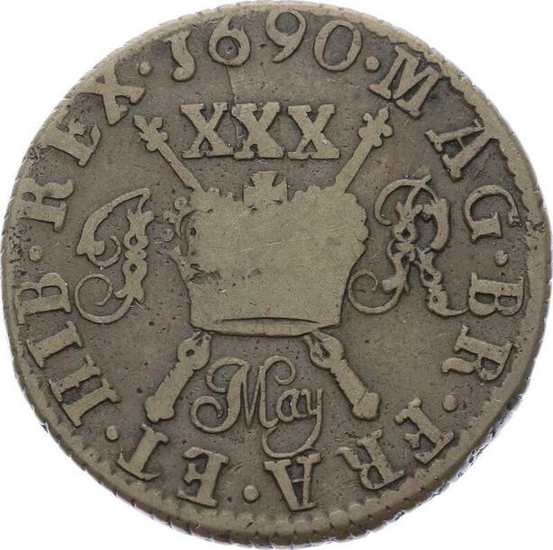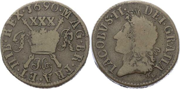O3177 Scarce Ireland 30 Pence Jacob II 1690 ->Make offer