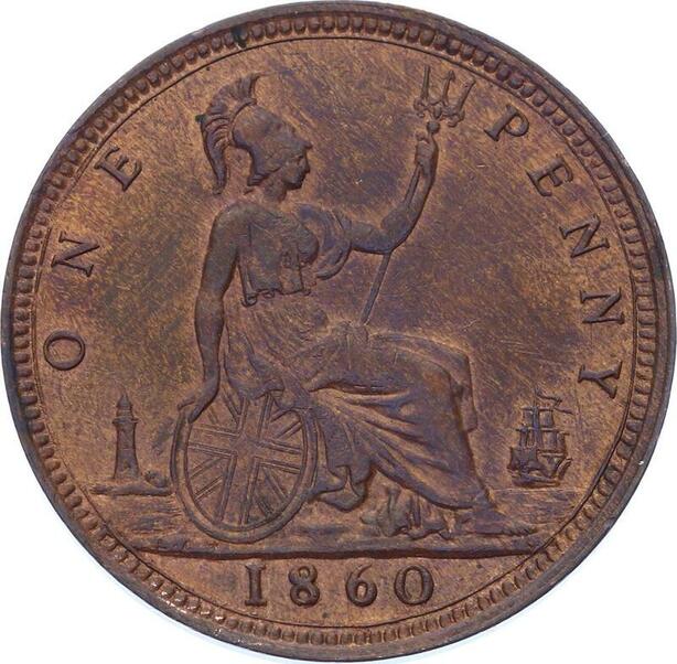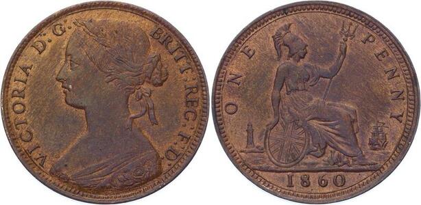 O3213 Scarce Great Britain Penny Victoria 1860 toothed both sides UNC !!