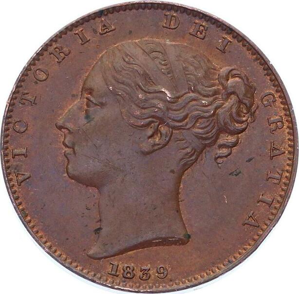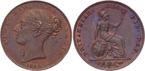 O3224 Great Britain Farthing Victoria 1st portait 1839 UNC BU Red !!