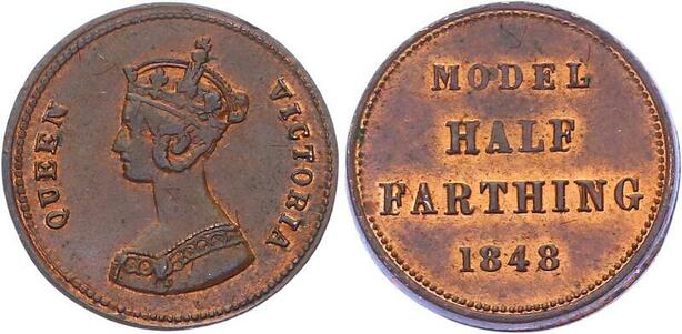 O3226 Great Britain Model 1/2 Farthing Victoria 1848 BU Red Luster