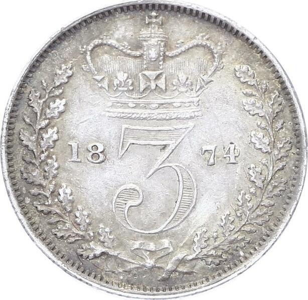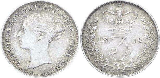 O3231 Great Britain 3 Pence Victoria 1st portrait 1874 Silver UNC ->Make offer