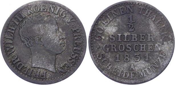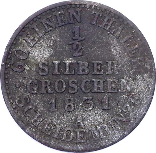 O3270 Germany Prussia 1/2 Silber Groschen Friedrich Wilhelm III 1831A Silver