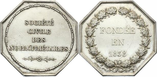 O3276 Rare Jeton Octogonal Louis-Philippe Nus propriétaires 1840 Argent