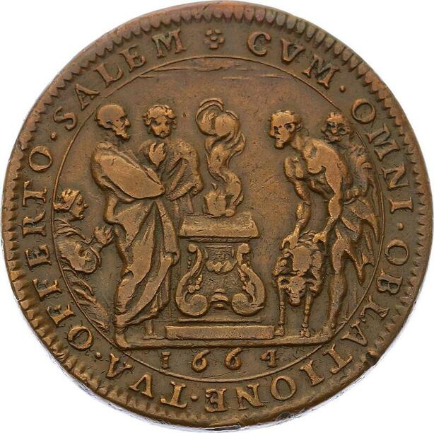 O3307 Rare Jeton Louis XIV Trésor Royal Gabelles France Sacrifice Agneau 1664
