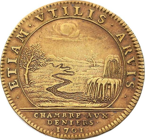 O3308 Rare Jeton Louis XIV Chambre Deniers 1701 Chute d'eau fleuve SUP