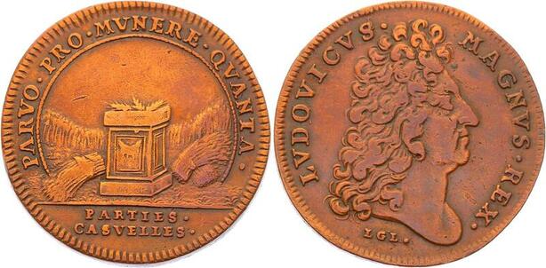 O3348 Jeton Louis XIV Parties Revenus Casuels 1697 Autel chargé d'épis