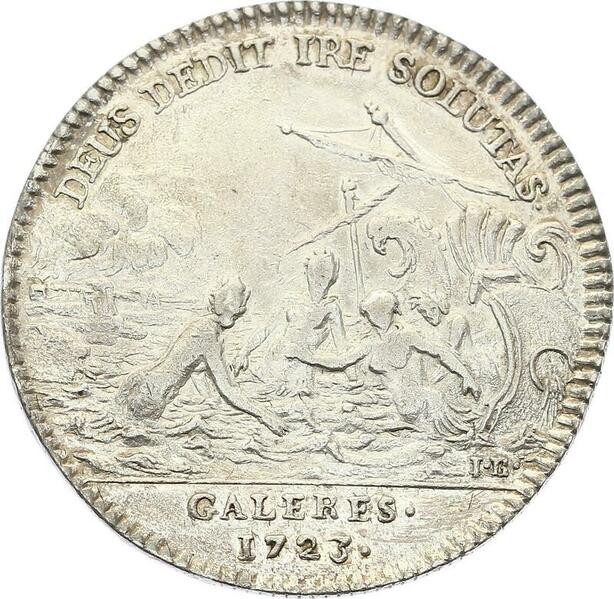 O3367 Jeton Louis XV Marine Galères Royales Sirènes nauvrages 1723 Argent ->FO