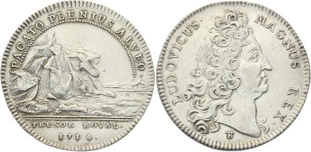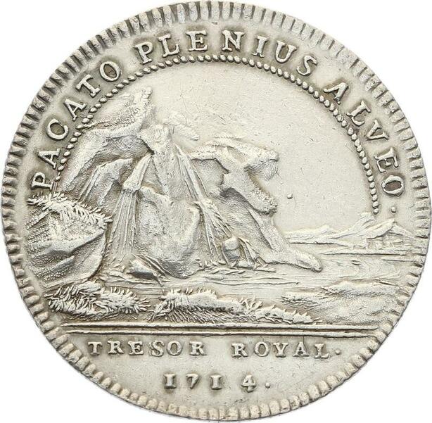 O3396 Jeton Louis XIV Chambre Trésor Royal Torrent Mont Lac 1714 Argent ->FO
