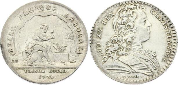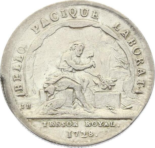 O3457 Jeton Louis XV Trésor Royal Bello Pacique Laborat 1728 Argent Silver
