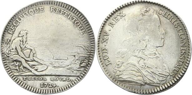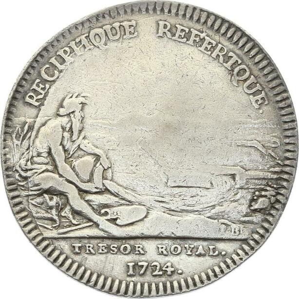 O3468 Jeton Louis XV Trésor Royal Fleuve Grand Reservoir 1724 Argent Silver