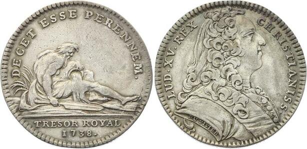 O3475 Jeton Louis XV Trésor Royal decet Esse Fleuve Assis 1738 Argent ->FO