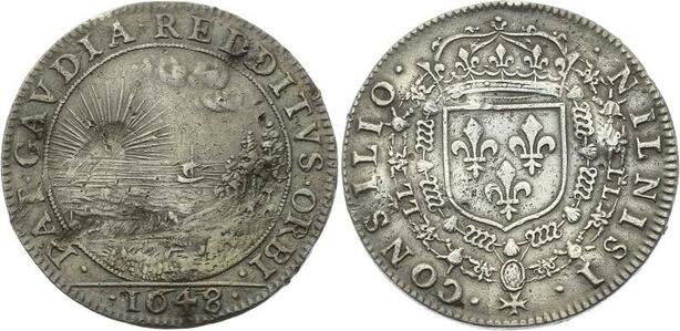 O3671 Rare R2 Jeton Conseil Roi Louis XIV 1648 Soleil mer navire Argent Silver
