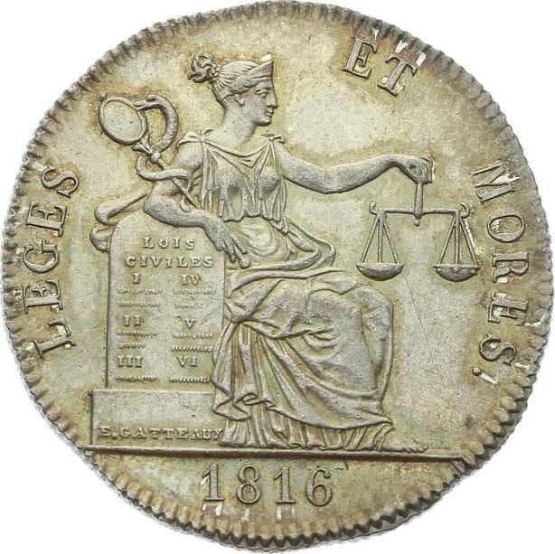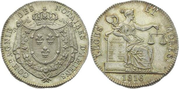 O3705 Rare Jeton Louis XVIII Amiens Notaires Argent 1816 Silver FDC ! Lustre