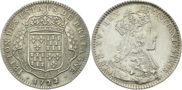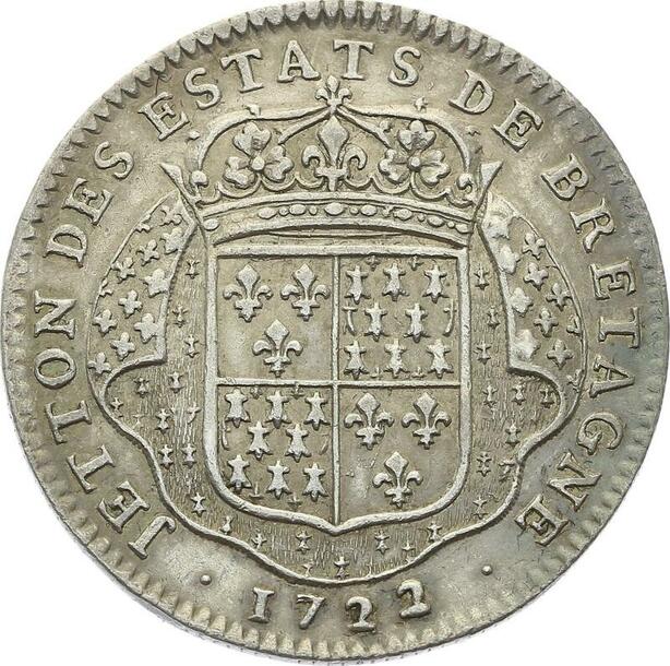 O3722 Rare Jeton Louis XV Etats Bretagne Nantes 1722 Hermine Argent Silver SUP