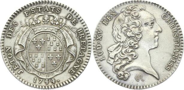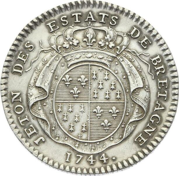 O3727 Jeton Louis XV Etats Bretagne Rennes 1744 Argent Silver SUP ->Make offer