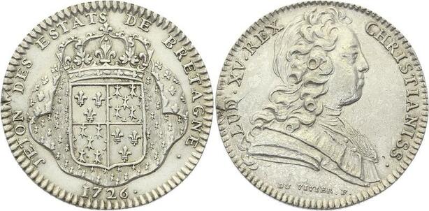 O3746 Rare Jeton R2 Louis XV Etats Bretagne Saint Brieuc 1726 Argent Silver