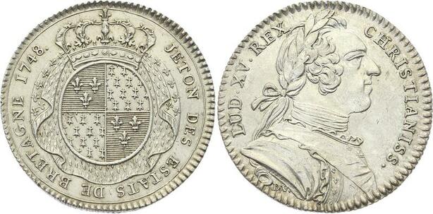 O3748 Jeton Louis XV Etats Bretagne Rennes 1748 Argent Silver Splendide