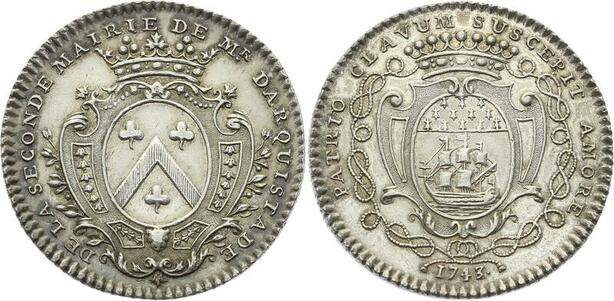 O3759 Rare !! Jeton Nantes Echevins René Darquistade Maillardière 1743