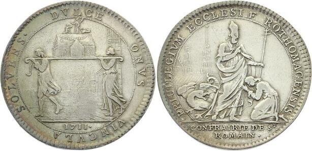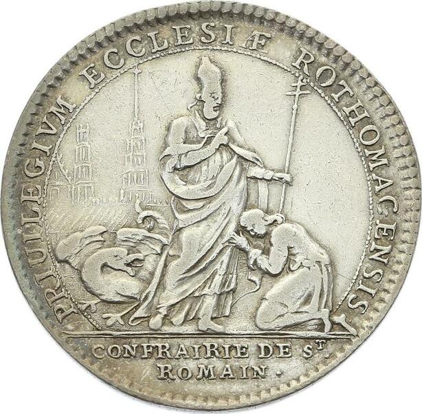 O3765 Jeton Louis XIV Rouen Clergé Eglise Confrérie Saint Romain 1711 argent