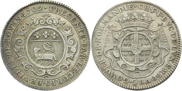O3776 Rare Jeton CFF de Montmorency Luxembourg Normandie Louis XIV 1709 Argent ->M offre