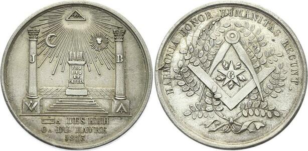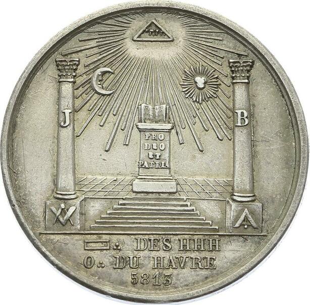 O3778 Rare Jeton Franc Maçons Orient du Havre loge HHH 5813 1813 Argent SUP