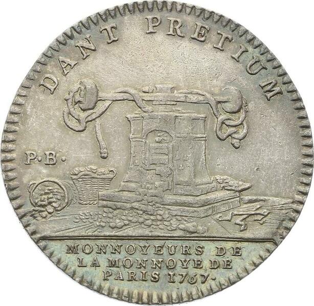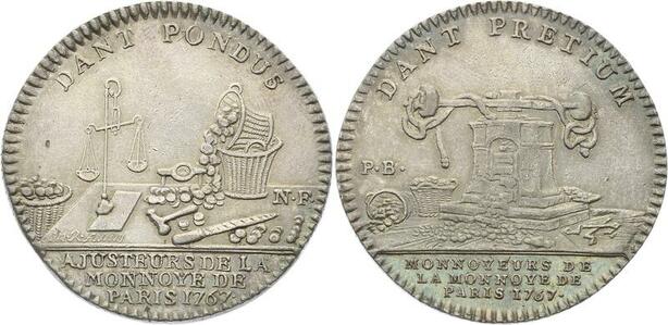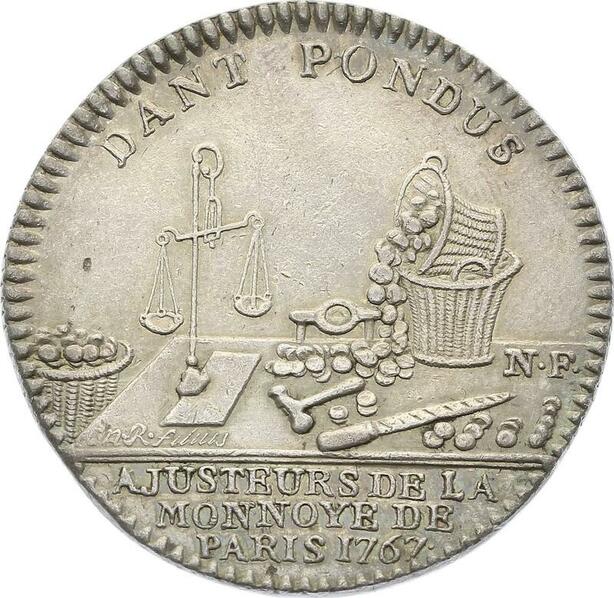 O3836 Rare Jeton Louis XV Cour des Monnaies balancier 1767 Argent Silver SUP