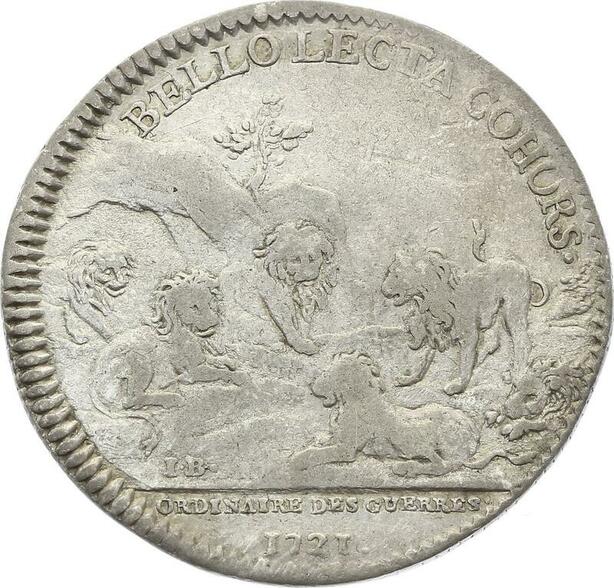 O3851 Tres Rare Jetons Louis XV Bello Lecta Cohors 6 Lions 1721 Argent