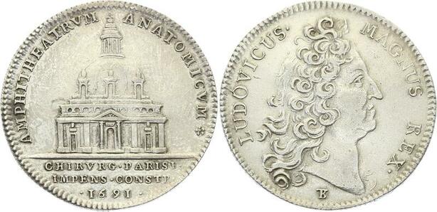 O3904 Rare Jeton Louis XIV Académie Chirurgie Chirurgiens Paris 1691 argent