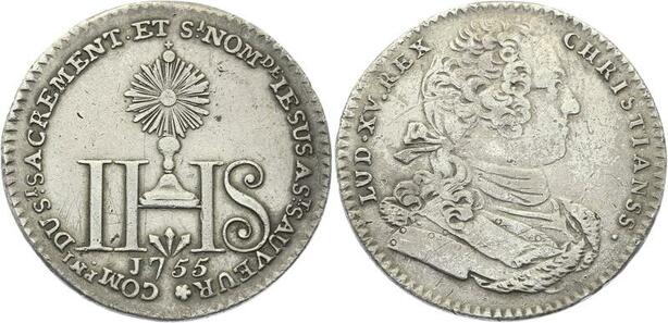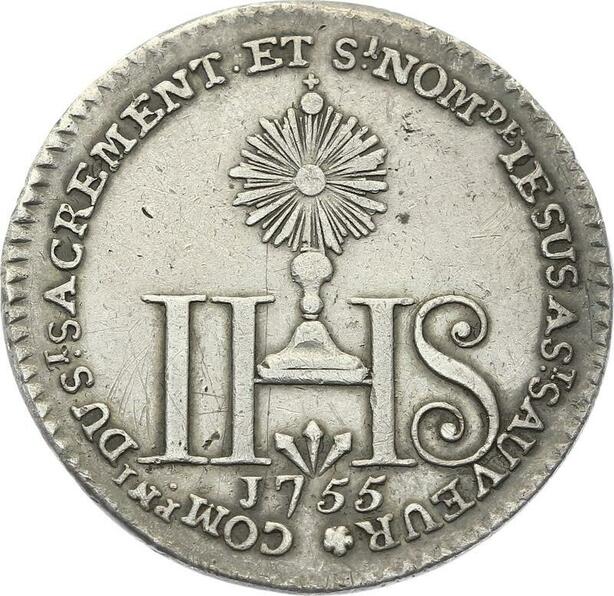 O3908 Rare Jeton Louis XVI Compagnie Sacrement Jésus Saint Sauveur 1755 Argent