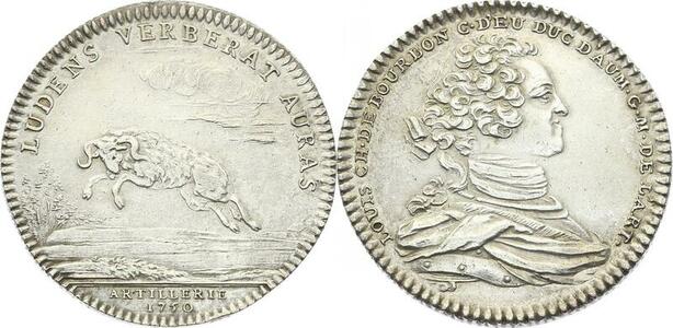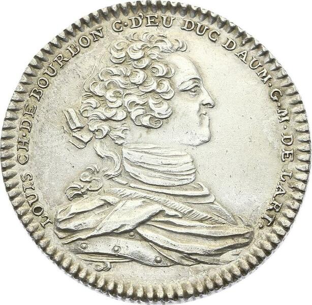 O3927 Rare Jeton Louis-Charles Bourbon Eu Artillerie 1750 Argent Boucton SUP