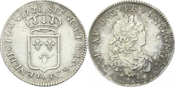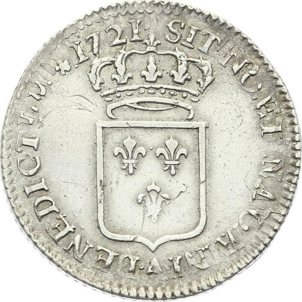 O3938 Rare Louis d'argent 1/3 Ecu de France Louis XV 1721 A Paris Argent Silver