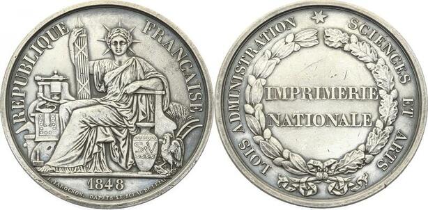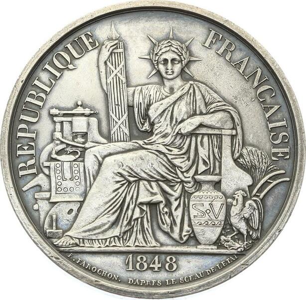O3959 Rare Jeton 1848 Imprimerie Papeterie Farochon Sceau Etat Argent SUP