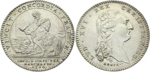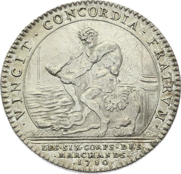 O3962 Rare R2 Jeton Louis XVI 1776 Corporations Six Corps Hercule Argent SUP