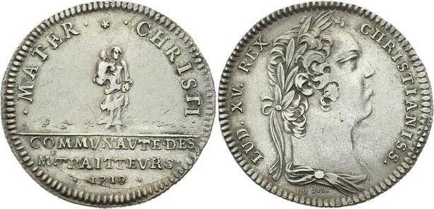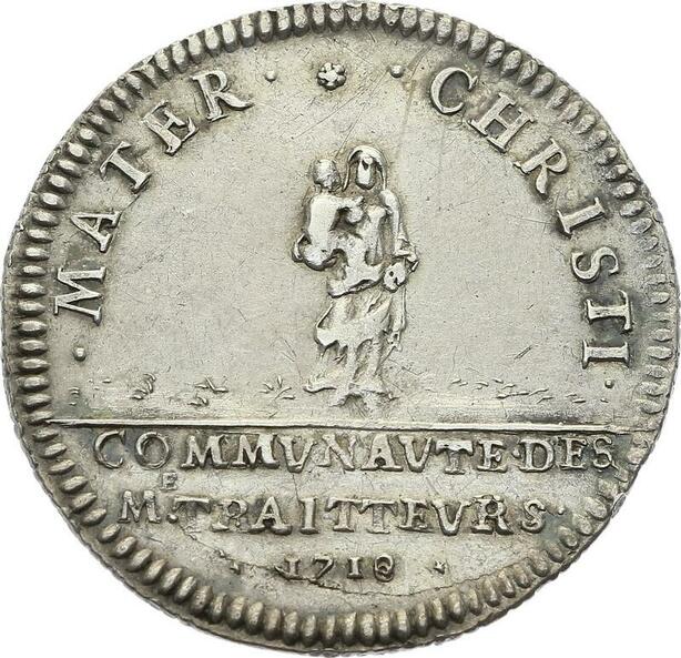 O3988 Rare R2 Jeton Louis XV 1719 Communauté des Traiteurs Argent Silver