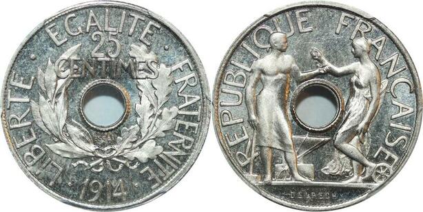 O4 Finest Top Pop France 25 Centimes Essai Delpech 1914 PCGS SP66 FDC -> M offer