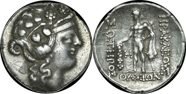 O37 Rare Thrace Thasos Tetradrachm Dionysos Herakles 148-80 Argent Silver