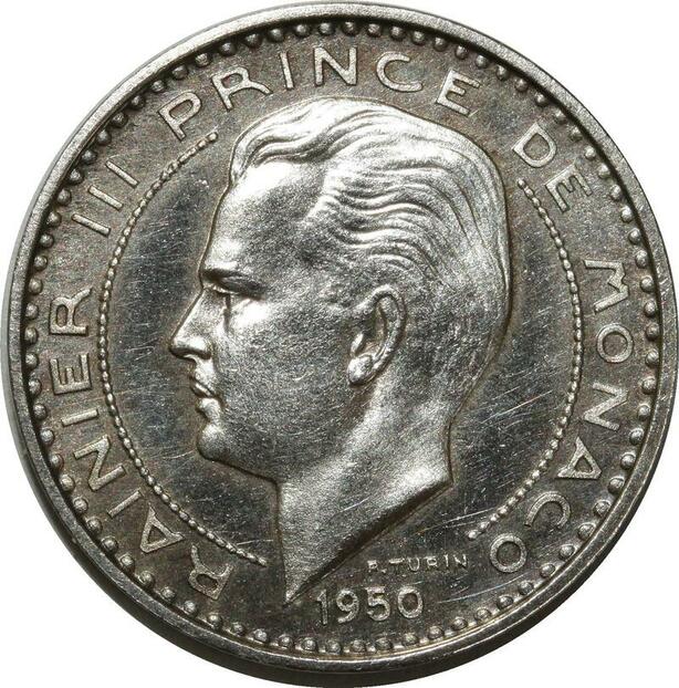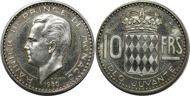 O71 Rare !! Monaco 10 Francs Rainier III 1950 Probe Essai Argent FDC !
