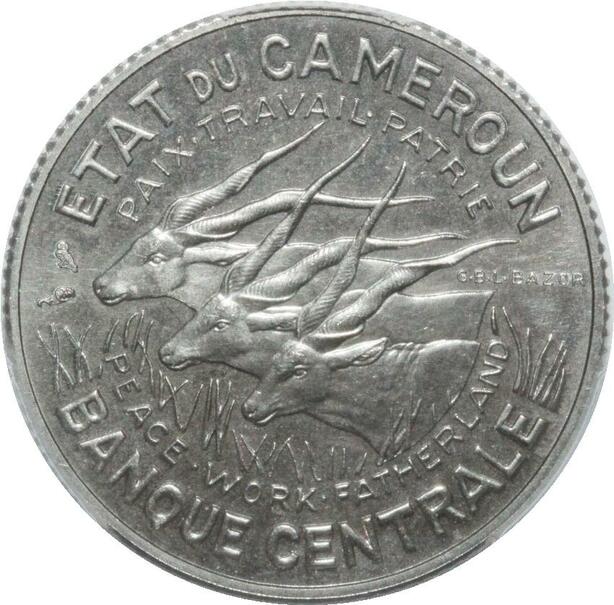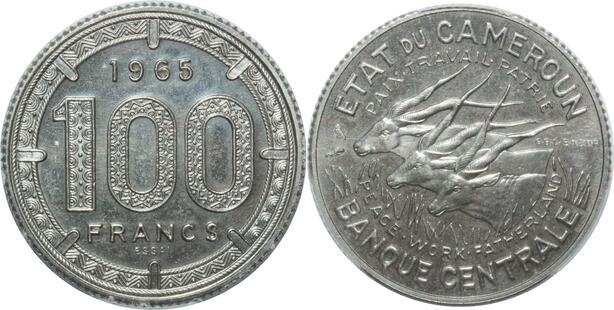 O97 Unique Unlisted Cameroun Pré série 100 Francs Essai 1965 Elans PCGS SP67