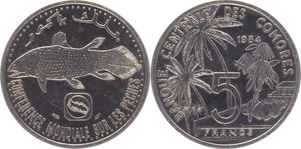 O108 Comores 5 Francs Coelacanthe 1984 SPL -> Make offer