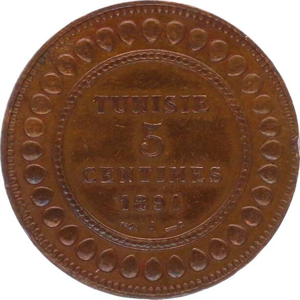 O112 Tunisie 5 Centimes Ali Bey Protectorat Francais 1891 A Paris SUP