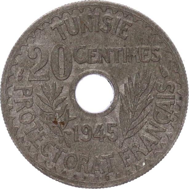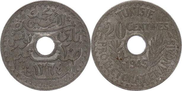 O124 Tunisie 20 Centimes Muhammad Al-Amin Protectorat Francais 1945 SUP