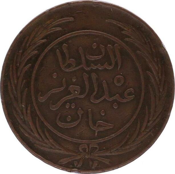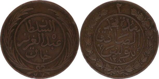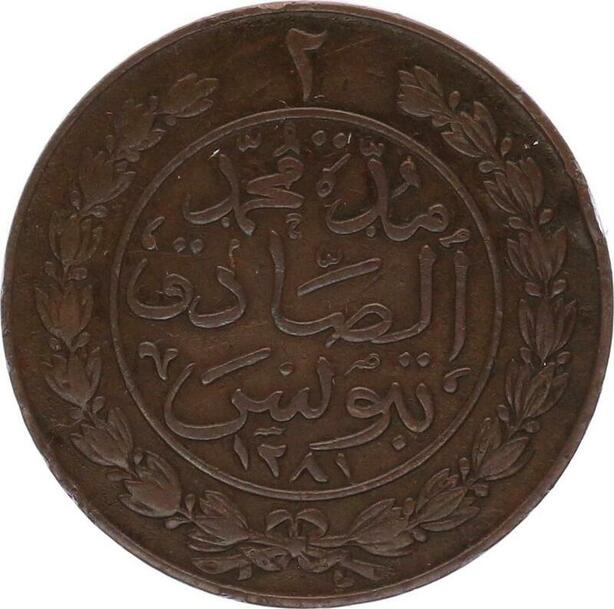 O155 Tunisie 2 Kharoubs Abdul Aziz Muhammad Al-Sadiq 1281 (1865) -> Make offer