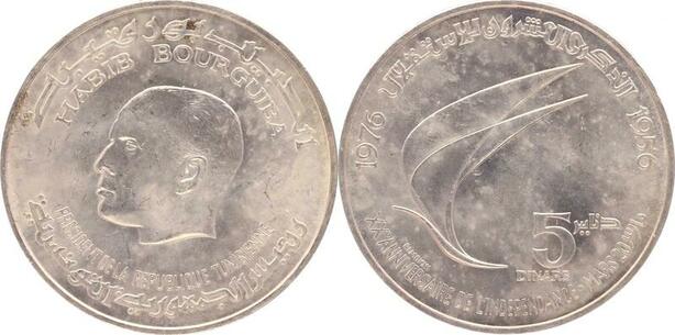 O172 Tunisie 5 Dinars Indépendance 1976 Argent Silver FDC !!! -> Make offer